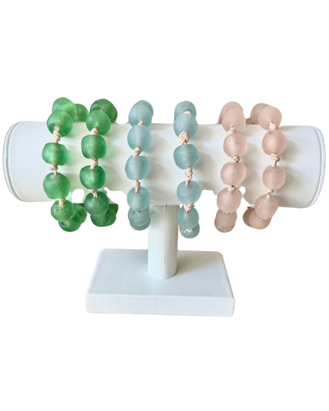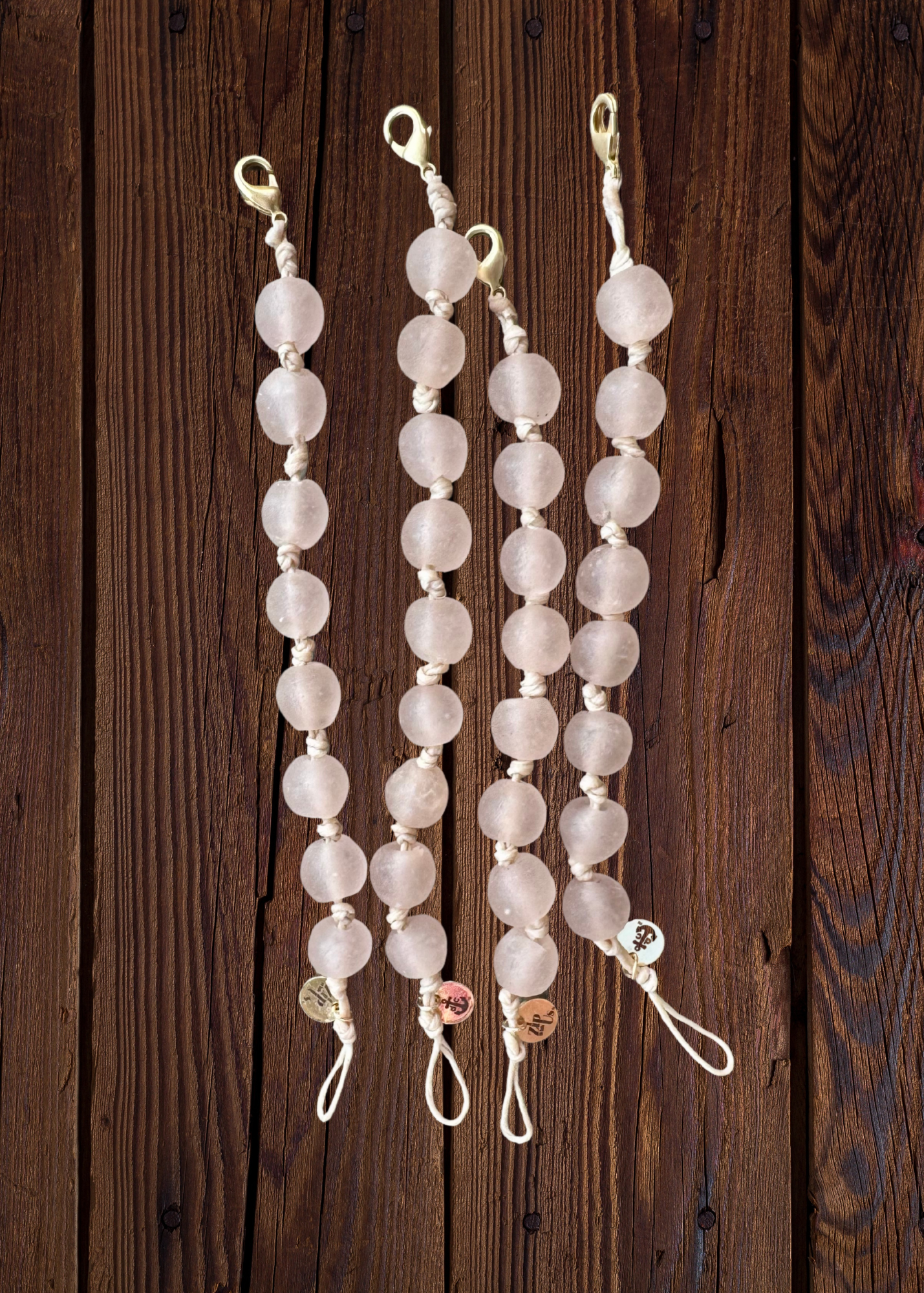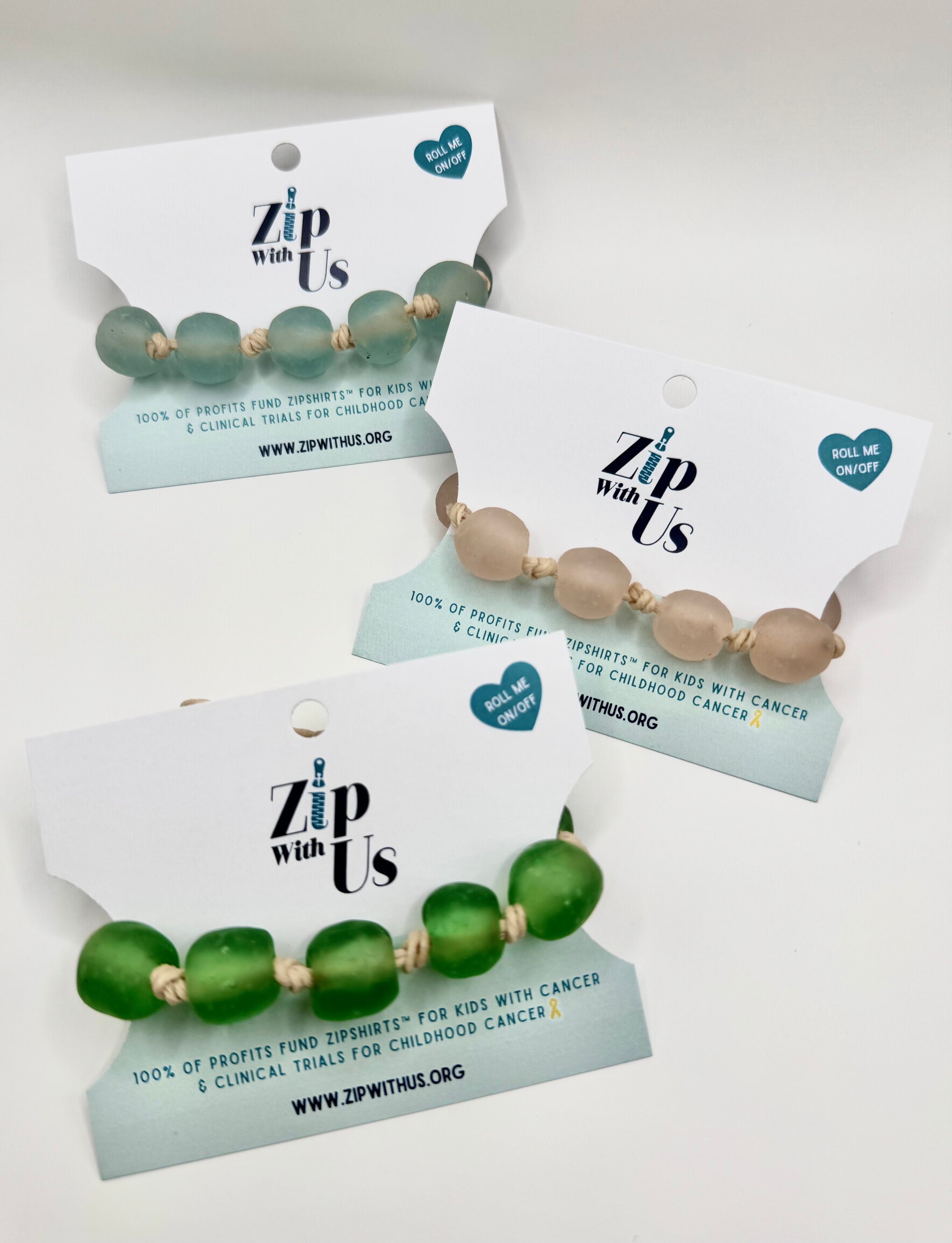 Handmade with knotted waxed linen, 14mm African glass beads, and finished with a gold lobster claw clasp for an easy on/off, each bracelet honors the brave kids we serve. Every bead is a symbol of strength, stitched into our mission to bring comfort and dignity to children facing cancer and other life threatening illnesses.