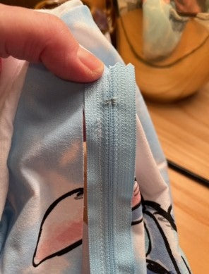 Make sure the cut in the shirt is about 1mm beyond the metal zipper stop.