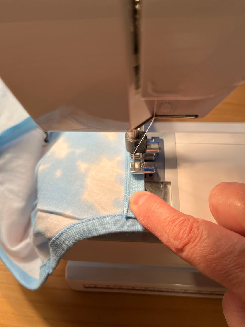 right side of the unstitched side of the shirt, making sure it is the same distance away from the top of the neckline as the other side.