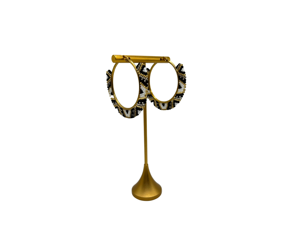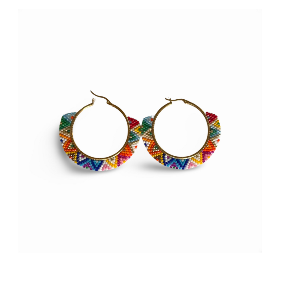 Approximate size: 2 inches Material: Gold plated stainless steel + seed beads